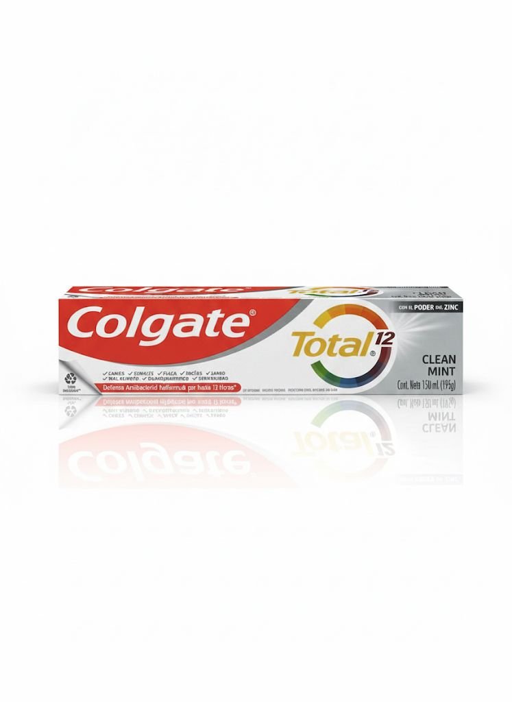 / Colgate Total 12 Clean Mint – Pasta Dental Anticaries con Flúor, Defensa Antibacterial Reforzada, con Poder del Zinc. Cont. Neto 150 ml (195g)