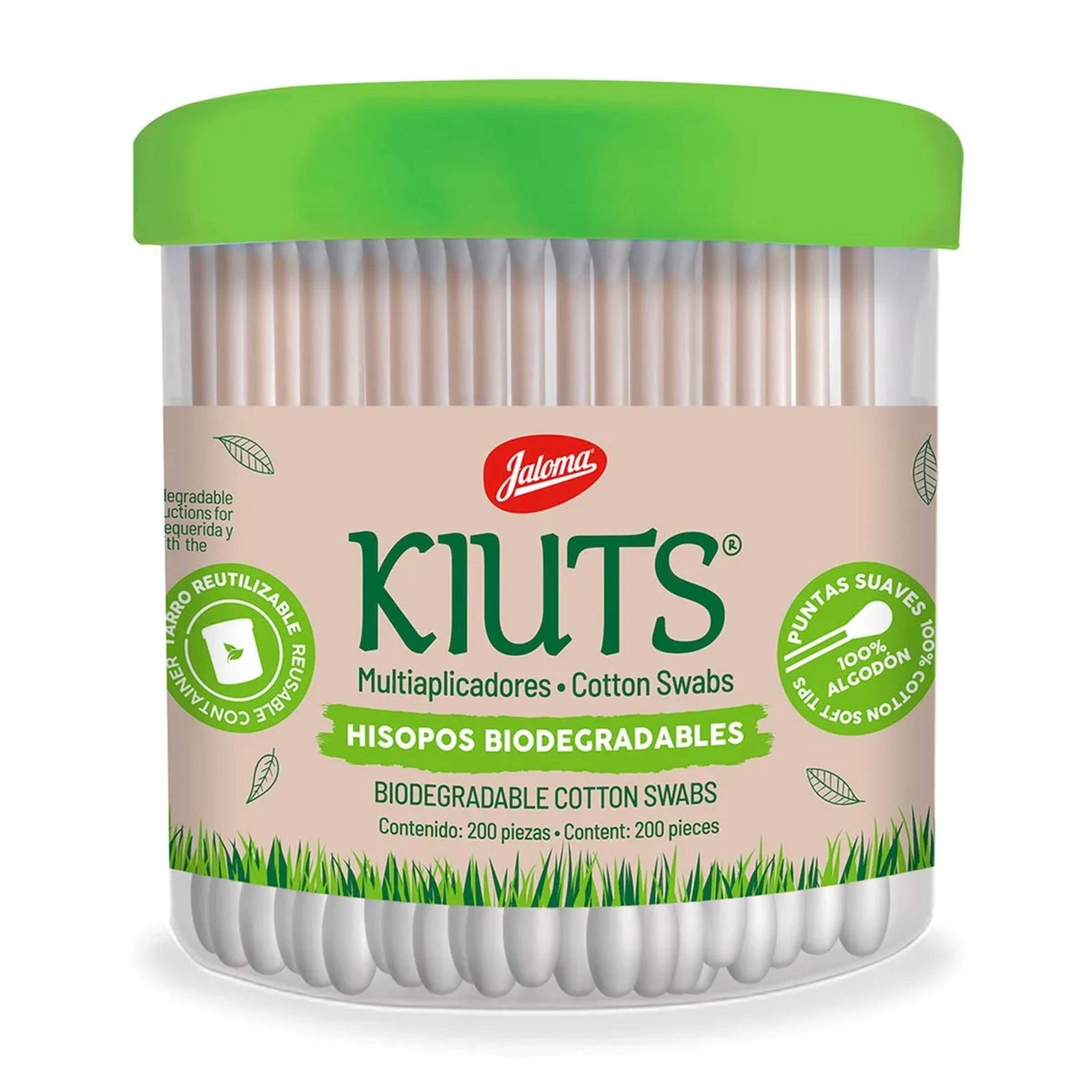 Hisopos kiuts Jaloma tarro 200 Piezas palillo flexible que en los extremos lleva montados dos copos de algodón suave. Biodegradables!