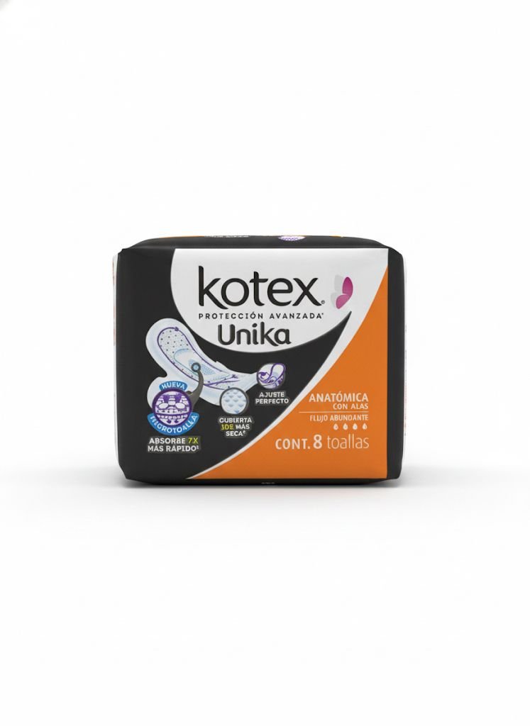 Kotex Protección Avanzada Unika, Anatómica, Toallas con alas, Flujo abundante, 8 toallas cantidad
