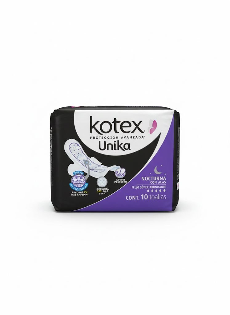 / Kotex Protección Avanzada Unika Nocturna con Alas Flujo Súper Abundante Cont. 10 Toallas