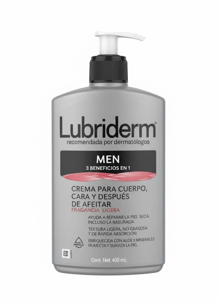 / Lubriderm MEN – Crema Cuerpo, Cara y Después de Afeitar (3 en 1) – 400 mL