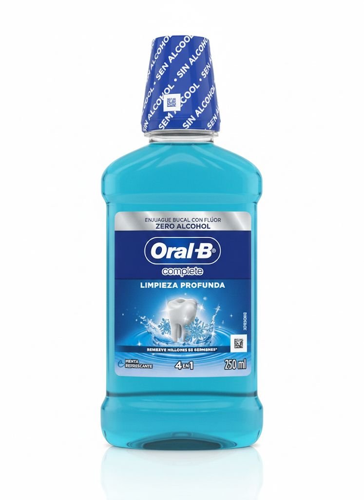 / Oral-B Complete Limpieza Profunda – Enjuague Bucal con Flúor, Zero Alcohol, Menta Refrescante, 4 en 1. 250 ml