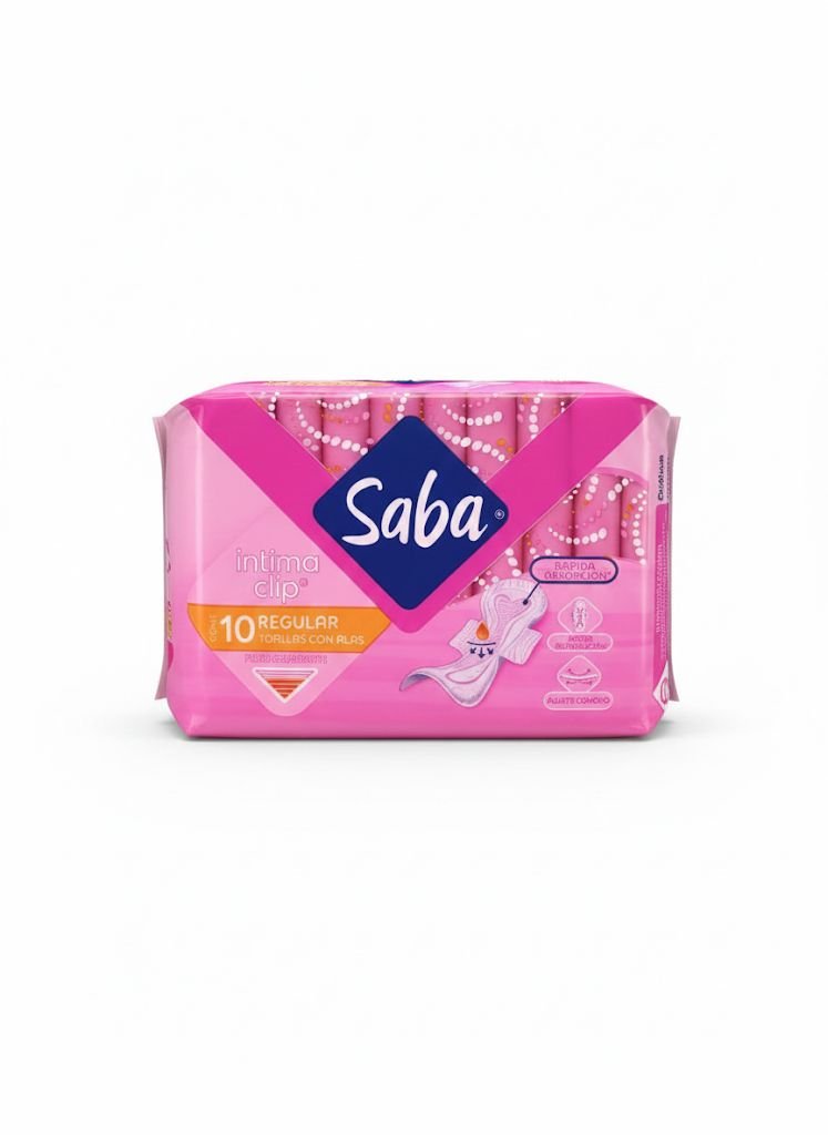 / Saba Íntima Clip, Regular, Toallas con alas, Flujo abundante, 10 toallas