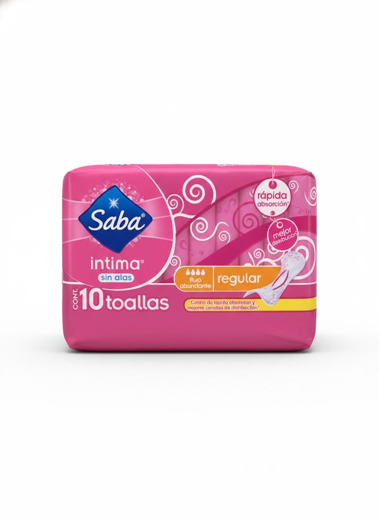 / Saba Íntima, Regular, Toallas sin alas, Flujo abundante, 10 toallas