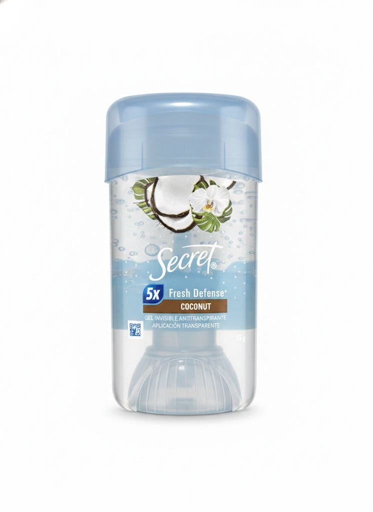 / Secret 5x Fresh Defense+ Coconut Gel Invisible Antitranspirante Aplicación Transparente, 45 g