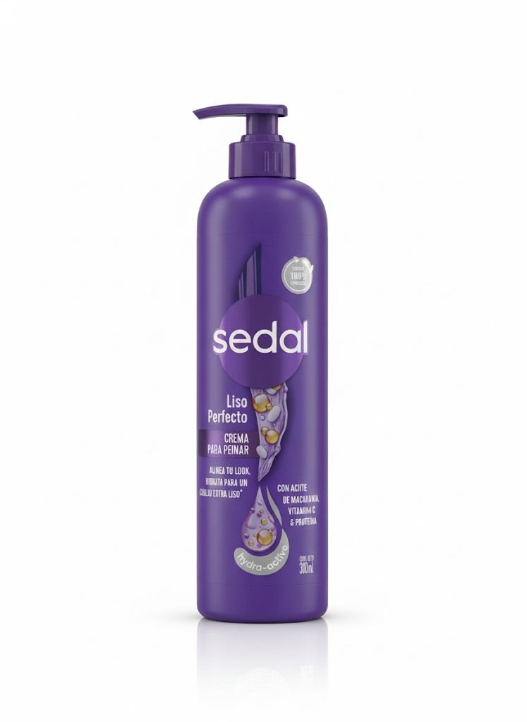 / Sedal Crema para peinar Liso Perfecto (Aceite de macadamia, Vitamina C y Proteína) Hydra-Active. Cont. Neto 300 ml